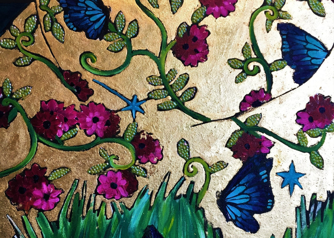 Oil paint on canvas with optional 24ct gold leaf, sequins and Swarovski crystals